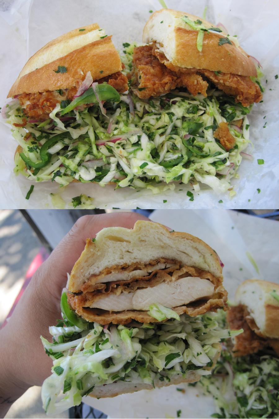 alameda county fair it's for the food. this year was no different. i arrived at the fair hungry and ready to eat my weight in grease but i couldn't settle on where to start. i had originally wanted to eat a corn dog but when i saw them i wasn't sold. so andrew and i walked around the entire stretch of fair 1 1/2 times before i was pointed in the right direction of the right corn dog. liz knew i was set on it so when she called to tell me what she saw one i knew that i had to check it out. i ordered the jumbo corn dog and when she picked it up i told her i had my sights set on a bigger one. the monster dog, indeed it was!! no joke it was as big as half my arm. the hot dog itself was good but i think the batter is what made this meal on a stick. since i wanted other food besides just the corn dog i shared it with the main asian and i'm glad i did cause it really was a beast and this was just the beginning.